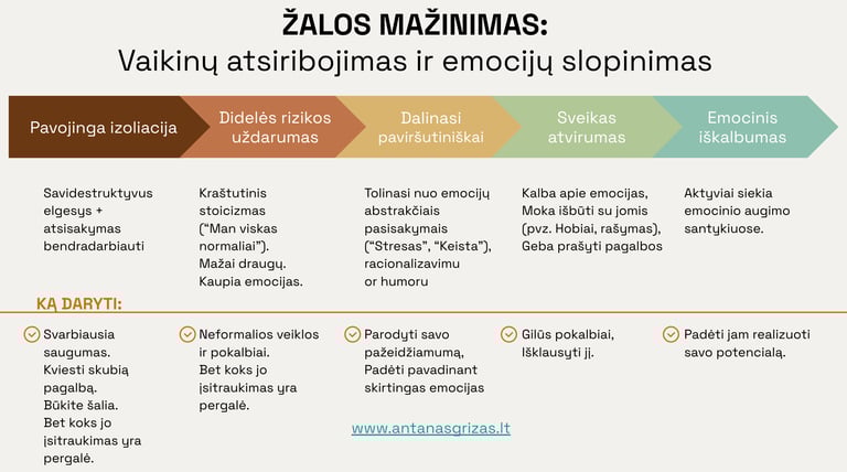 Vietoje nerealistiško lūkesčio, kad vaikinai iškart gebės suvaldyti agresiją, galime fokusuotis mažinti agresyvumo keliamą riziką ir judėti į sekantį, saugesnį žingsnį.